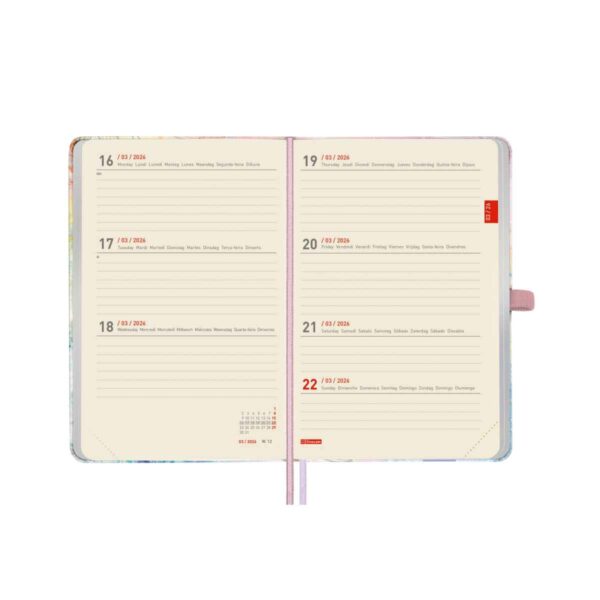 Agenda com capa flexível para 18 meses: começa em julho de 2025 e termina em dezembro de 2026. Perfeita para planejamento a longo prazo. As capas flexíveis são confortáveis ​​e abrem facilmente para uma escrita confortável. Com fita pontilhada e elástico. Os cantos são microperfurados para rápida identificação da semana atual. Para facilitar a localização de cada mês, a agenda possui um indicador no lado direito das páginas. Esta agenda inclui informações úteis e outros extras.