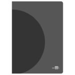 Caderno agrafado com capa em polipropileno.