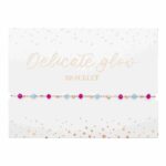 A coleção Delicate Glow irradia leveza com suas pedras de vidro coloridas. As delicadas pulseiras são feitas de aço inoxidável banhado a prata, banhado a ouro ou banhado a ouro rosa. Há uma escolha de 6 cores, algumas das quais são mais vibrantes, bem como tons pastéis. Pulseiras e tornozeleiras completam a coleção.