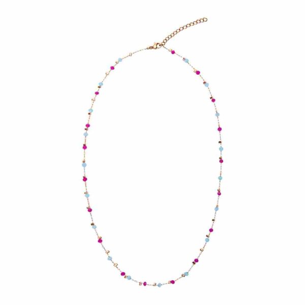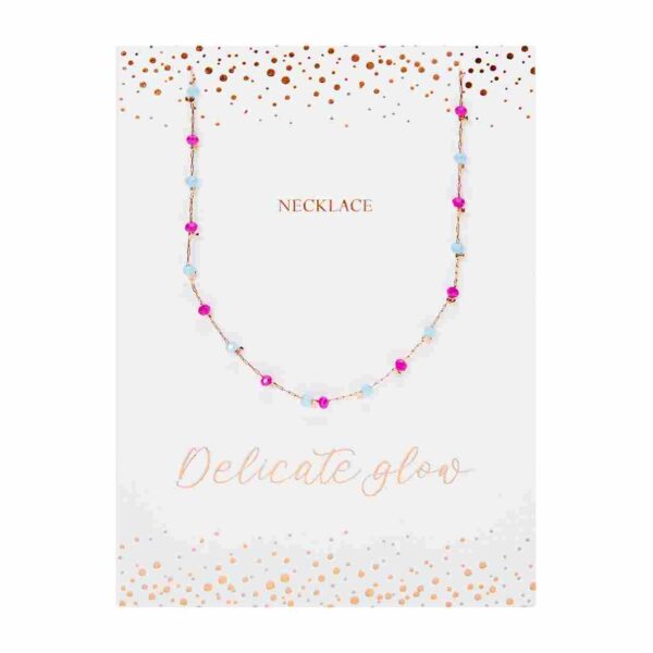 Colar “Delicate Glow” – aço inoxidável banhado a ouro rosa – Rosa-Turquesa
