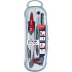A Maped projetou o sistema de parada para permitir o uso simples e eficaz da bússola. 1 – Abaixe a alavanca 2 – Ajuste o espaçamento dos braços 3 – Feche a alavanca para travar os braços 4 – Faça um círculo perfeito. O bloqueio fácil dos braços garante um desenho perfeito.
