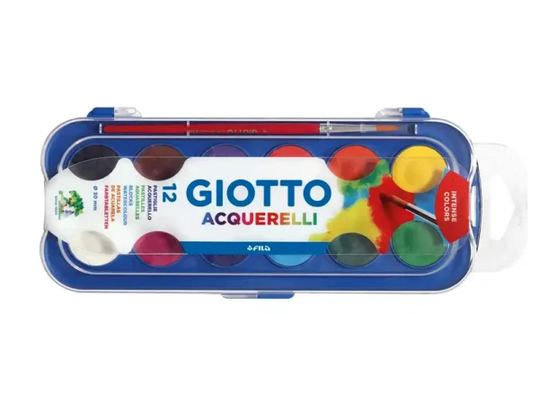 As aguarelas GIOTTO 12 cores com pincel e estojo de plástico são uma excelente opção para estudantes e entusiastas da arte. Este conjunto oferece cores vivas, intensas e muito opacas, facilmente diluídas em água, ideais para projetos escolares, aulas de artes e atividades lúdicas.
