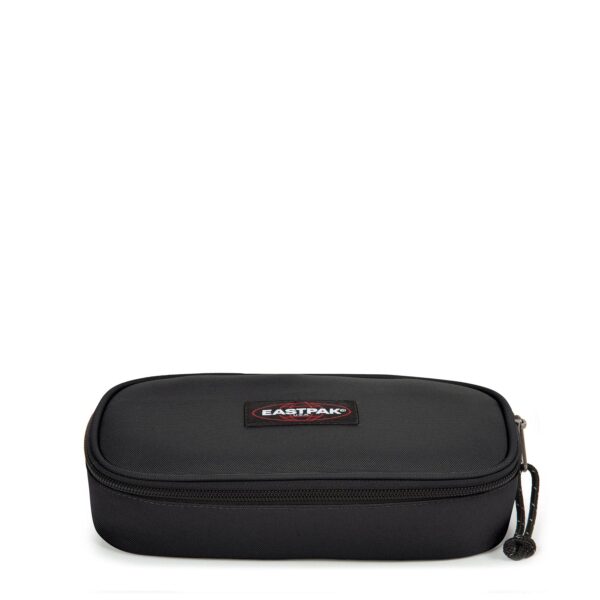 O estojo compacto em preto, equipado com um organizador de canetas interno.