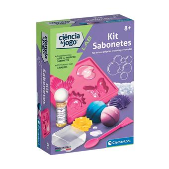 O Kit Sabonetes da Clementoni para aprender a arte de fazer sabonetes e experimentar a ciência por trás das bombas de banho efervescentes. Este incrível kit contém tudo o que precisa para fazer criações maravilhosas e perfumadas. As experiências científicas seguras guiadas através do manual ilustrado, levarão as crianças a uma descoberta da ciência dos cosméticos.