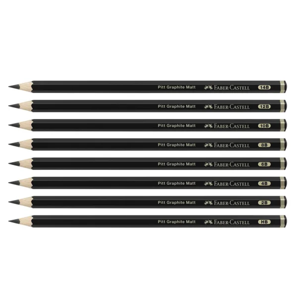 A revolução no desenho a grafite! Os lápis de grafite sempre produziram uma textura cintilante e brilhante. Dependendo da preferência do artista, esse efeito é incorporado com maestria ou percebido como perturbador. O inovador Pitt Graphite Matt foi especialmente desenvolvido para reduzir os reflexos de luz no papel e criar o máximo efeito de profundidade, variando os diferentes graus de dureza.