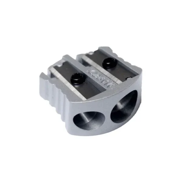 Apara lápis em corpo metálico ergonômico com áreas de aderência antiderrapantes. Concebido para afiar lápis com um diâmetro de 8 mm e de 11 mm 2 furos . Equipado com uma lâmina de aço de alta qualidade.