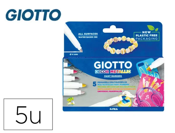 Descubra o versátil conjunto de marcadores metálicos GIOTTO Decor, um produto concebido para libertar a sua criatividade em diversas superfícies. Cada marcador possui tinta segura, resistente à luz e à base de água, que garante um acabamento permanente em materiais porosos e removível em superfícies não porosas, como o vidro. Perfeitos para qualquer projeto de decoração ou personalização, estes marcadores oferecem uma cobertura ideal e um acabamento brilhante que se destacará em qualquer fundo.