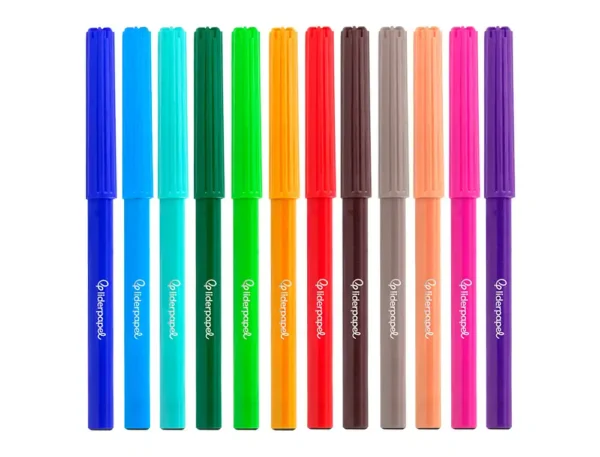 O conjunto de marcadores de alta qualidade proporciona uma experiência de escrita e desenho suave e vibrante. A caixa inclui 12 unidades em cores variadas, oferecendo um vasto leque de opções para diversas aplicações artísticas e de escrita.