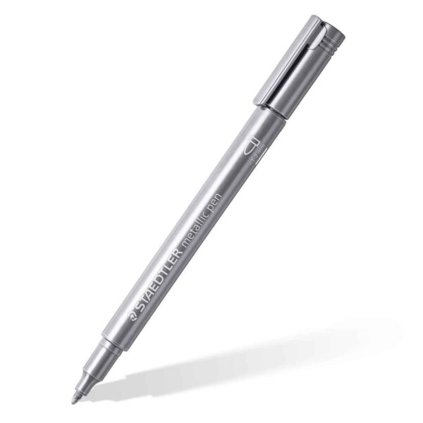 O Staedtler Metallico é uma ótima caneta para escrita opaca e decoração em papéis claros e escuros, bem como papelão. Ideal para design criativo de cartões comemorativos e para scrapbooking. A cor é resistente à luz e altamente opaca. De superfícies lisas, como vidro, também pode ser limpo novamente com um pano úmido.