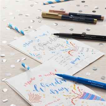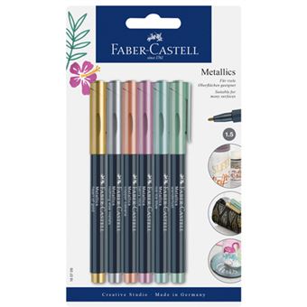 Cores Sortidas: Prateado Metálico; Dourado Metálico; Cobre Metálico; Violeta Metálico; Azul Metálico; Verde Metálico”Marcadores metálicos adequados para papel e superfícies lisas, tinta da china com pigmentos de altíssima qualidade; Alta resistência à luz e à água, após secar; A tinta não trespassa o papel; Fluxo de tinta contínuo; Uma vez que a tinta seca rapidamente, admite a sobreposição de cores sobre a mesma superfície e os traços permanecem, perfeitamente definidos; Espessura: 1,5 mm