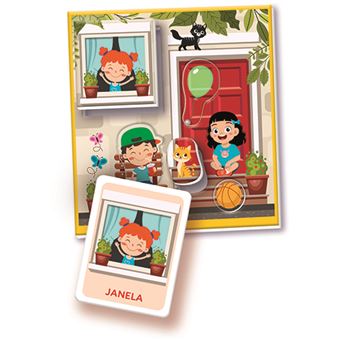 Um jogo educativo inspirado no método Montessori, para desenvolver a lógica e a destrezas manual. A embalagem contém uma grande puzzle-casa com 6 divisões nas quais podem ser colocados 30 objetos com formas. Além disso, inclui um baralho de 33 cartas com imagens e palavras, úteis para o desenvolvimento da linguagem. As crianças começam por montar o puzzle, associando os objetos às divisões certas, e depois colocam os objetos sobre as cartas com palavras