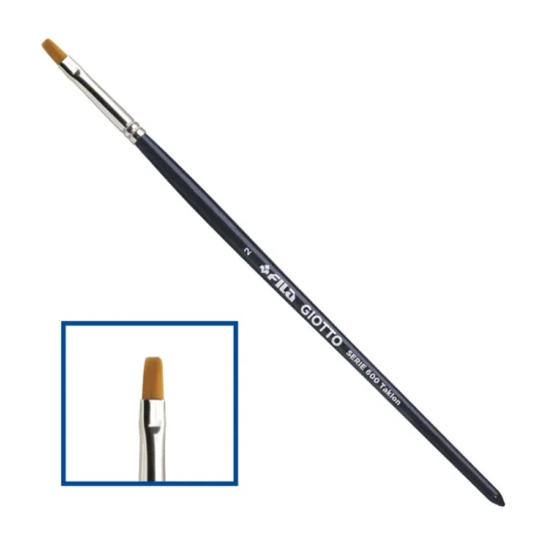 Pincel de fibra sintética ideal para todas as técnicas de pintura. Ponta plana macia e elástica, não perde pelos e garante excelente absorção e alta retenção de cor. Perfeito para fundos planos e espalhando-se por grandes superfícies. Cabo pintado de azul meia-noite e virola de metal