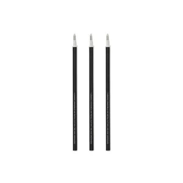 A recarga tem uma ponta de 0,7 mm e contém tinta termossensível que pode ser apagada com a ponta de borracha da Caneta Apagável.