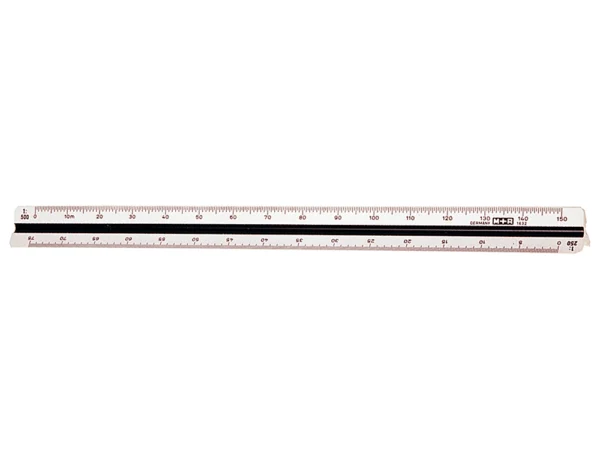 Triangular, branca, de 30 cm de comprimento. 6 divisões. Estojo individual rígido pvc. Escalas 1:100, 1:200, 1:250, 1:300, 1:400 e 1:500. Para arquitetura