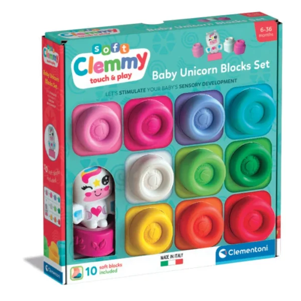 Da linha Clemmy. 10 peças, 1 personagem de fantasia e infinitas possibilidades de jogos sensoriais e narrativos. Laváveis e super macios, os Clemmy são feitos para crescer com os mais pequenos.