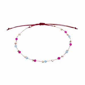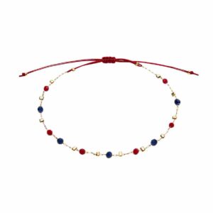 Pulseira "Delicate Glow" - aço inoxidável banhado a ouro - Vermelho-Azul