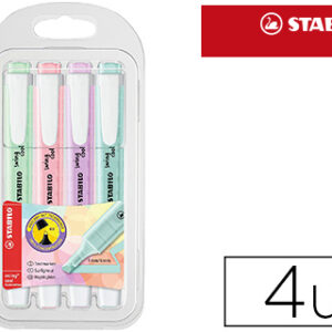 Marcador stabilo fluorescente cor pastel cx 4 unid cores sortidas.