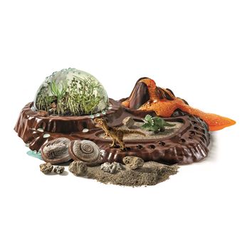 Um terrário jurássico para montar, personalizar e recriar o mundo pré-histórico dos dinossauros. O jogo é composto por dois ambientes: uma parte terrestre com experiências botânicas e uma área onde se pode experimentar erupções vulcânicas. Inclui 2 modelos de T-Rex e Triceratops, para brincar a reconstruir o ambiente em que viveram. O kit inclui também um molde para criar um vulcão e fósseis de gesso para colorir, enriquecendo e tornando ainda mais interessante a atividade de jogo.