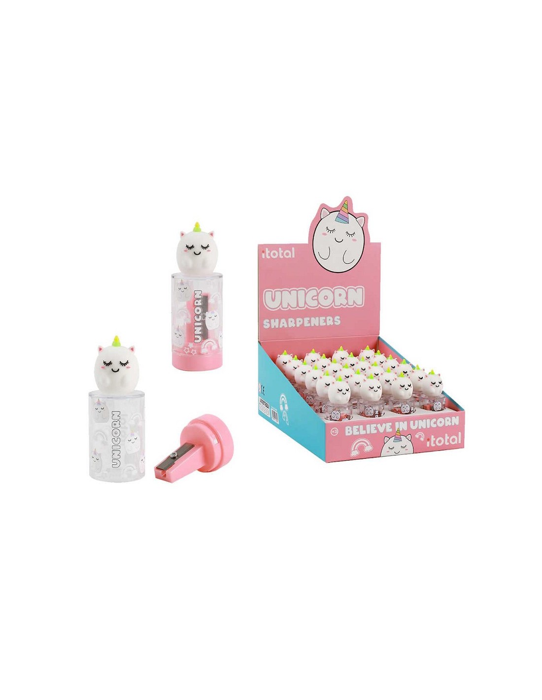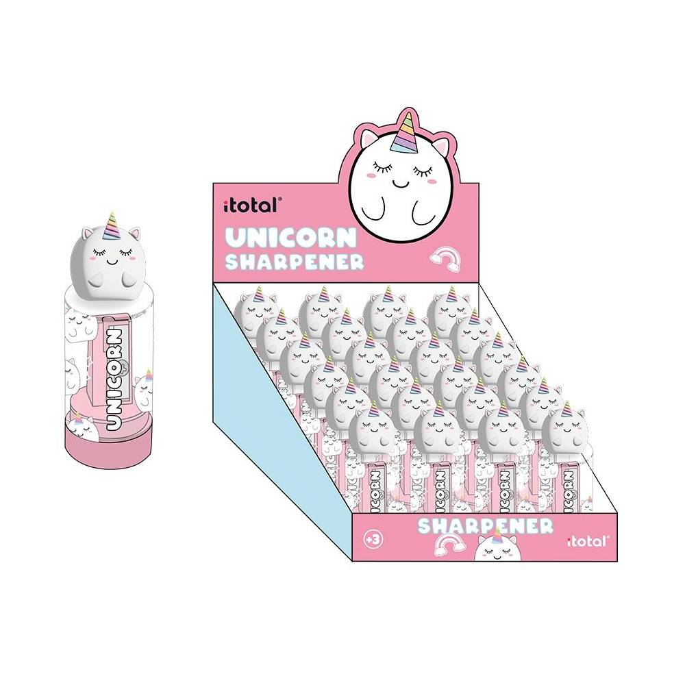 Divertida afia de lápis com figuras kawaii de Unicórnio Mágico.