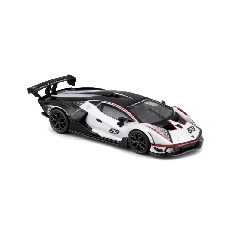 Adicione um toque de velocidade à sua coleção com este Lamborghini Essenza SCV12. A combinação do design em preto e branco é única e charmosa.