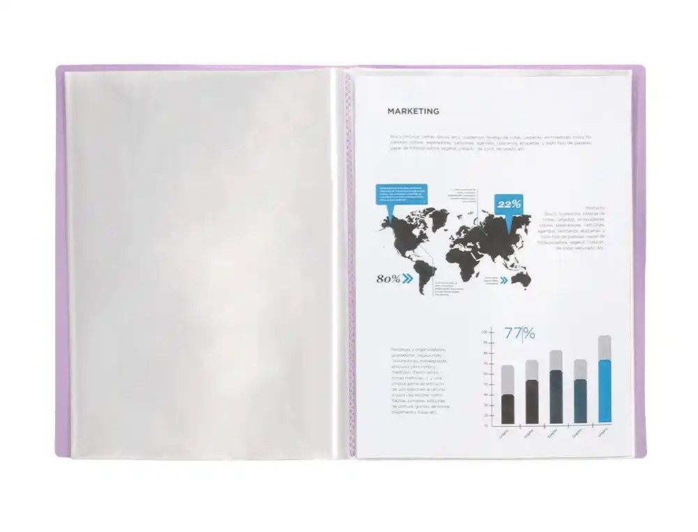 Design funcional: O seu formato tipo vitrina permite a visualização rápida e fácil dos documentos sem necessidade de os retirar das capas, otimizando assim o seu tempo e esforço.