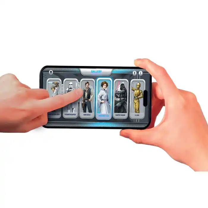 Recursos do aplicativo: Tempo Real para controle do robô em tempo real, Programação para aprender o básico de programação e uma Galeria Interativa onde você pode ver R2-D2 reagir.