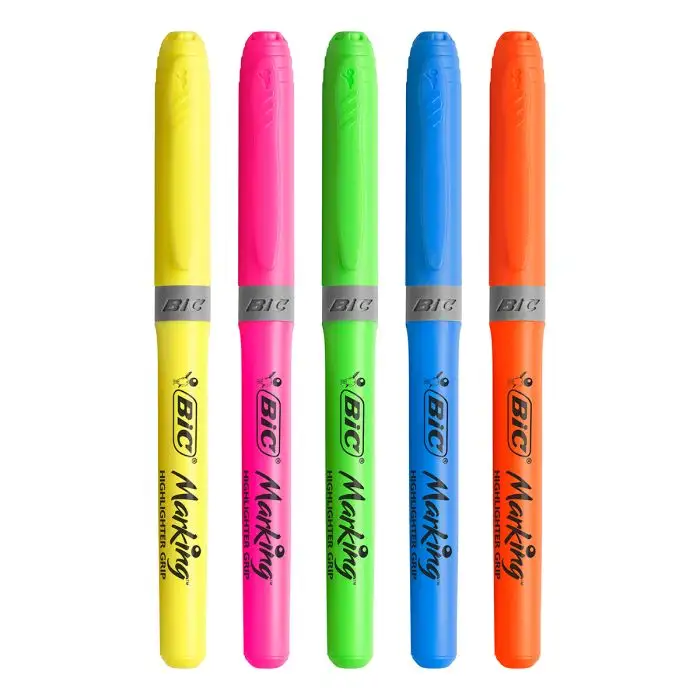 Os marcadores BIC Highlighter Grip contam com uma empunhadura de borracha ranhurada para linhas confortáveis ​​e uniformemente calibradas.