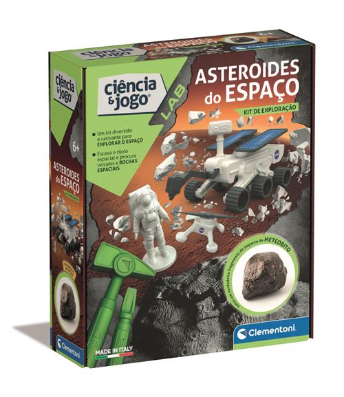O jogo contém um bloco de gesso, um martelo e um escopro para escavar e desenterrar um rover marciano, um drone, um astronauta e um fragmento de rocha de meteorito!