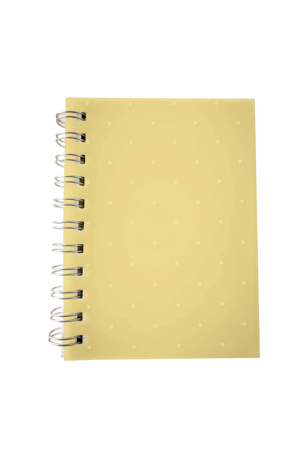 Notebook espiral em tons pastel e com polka dots. Este notebook é perfeito para levares para qualquer lado e fazeres anotações e rabiscos.