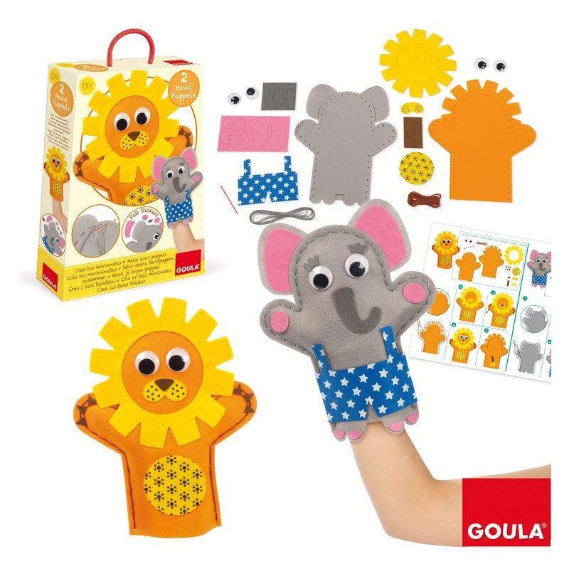 Este pacote inclui tudo o que você precisa para criar 2 marionetes, um elefante e um leão. Inclui adesivos de feltro.