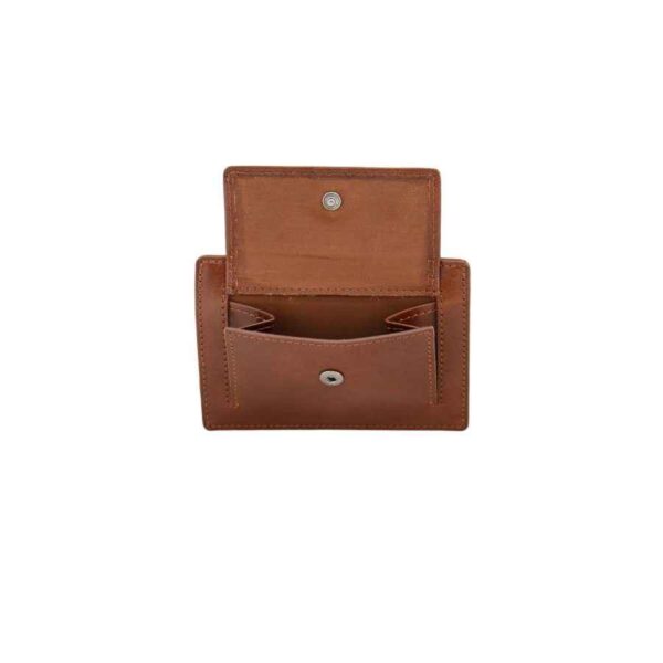 Porta-cartões de crédito em conhaque, feito em couro bovino com acabamento em anilina e toque super sedoso.
