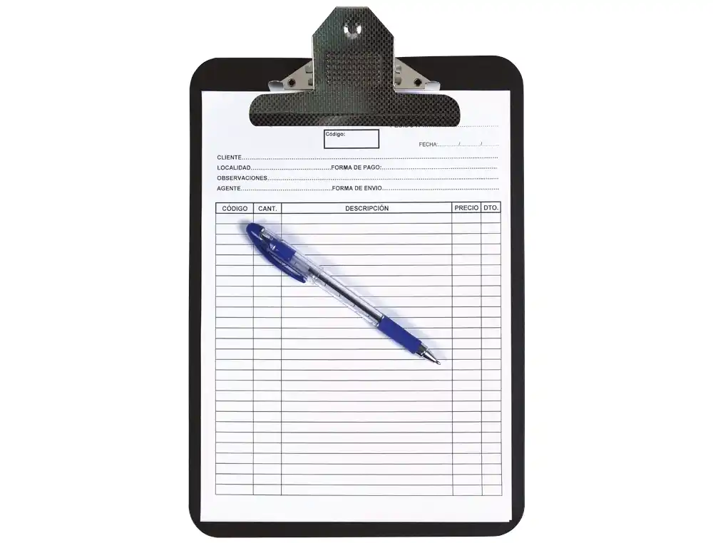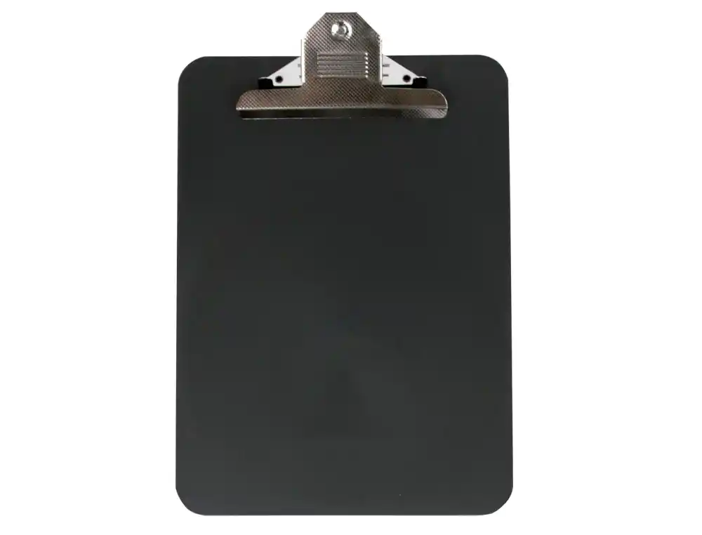 Mecanismo de fixação: Inclui um clipe metálico na parte superior para fixar os documentos.