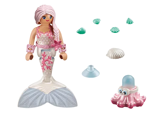 PLAYMOBIL Special Plus figura de sereia com polvo com função de atirar água. Com concha decorativa para aderir a superfícies lisas (inclui ventosas).