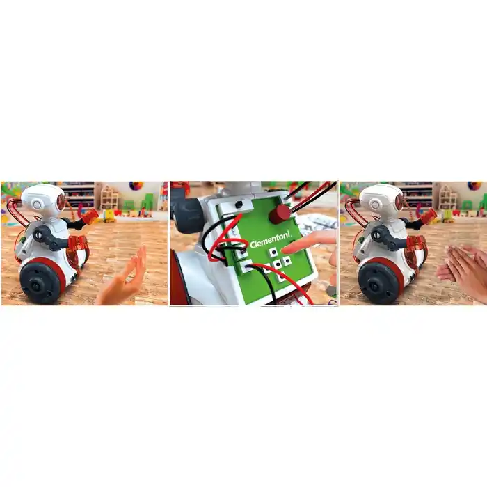Você pode usar o microfone para dar comandos simplesmente batendo palmas, e o painel com botões na parte traseira do robô pode ser usado para programar sua rota.